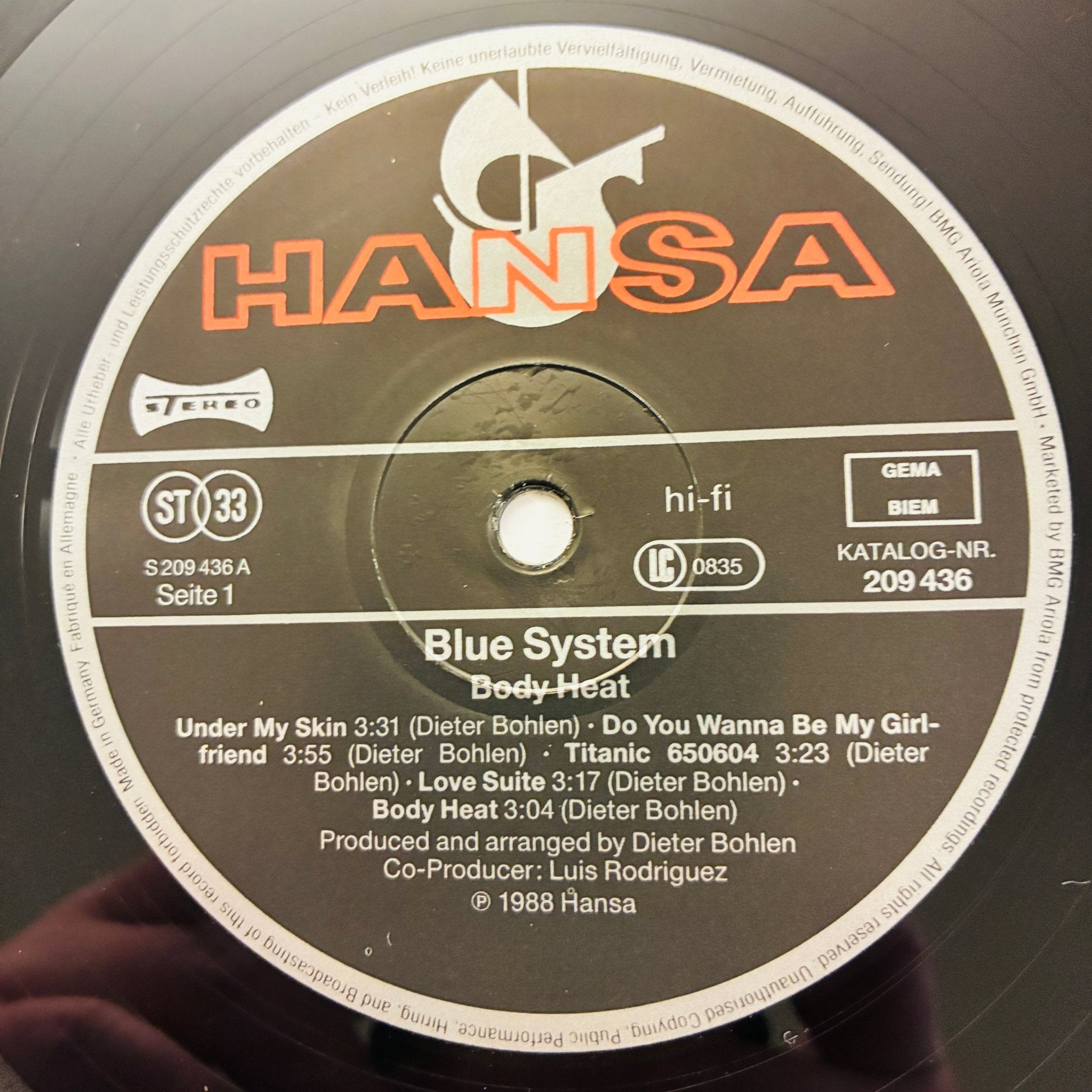 Blue System – Body Heat LP (VG+)