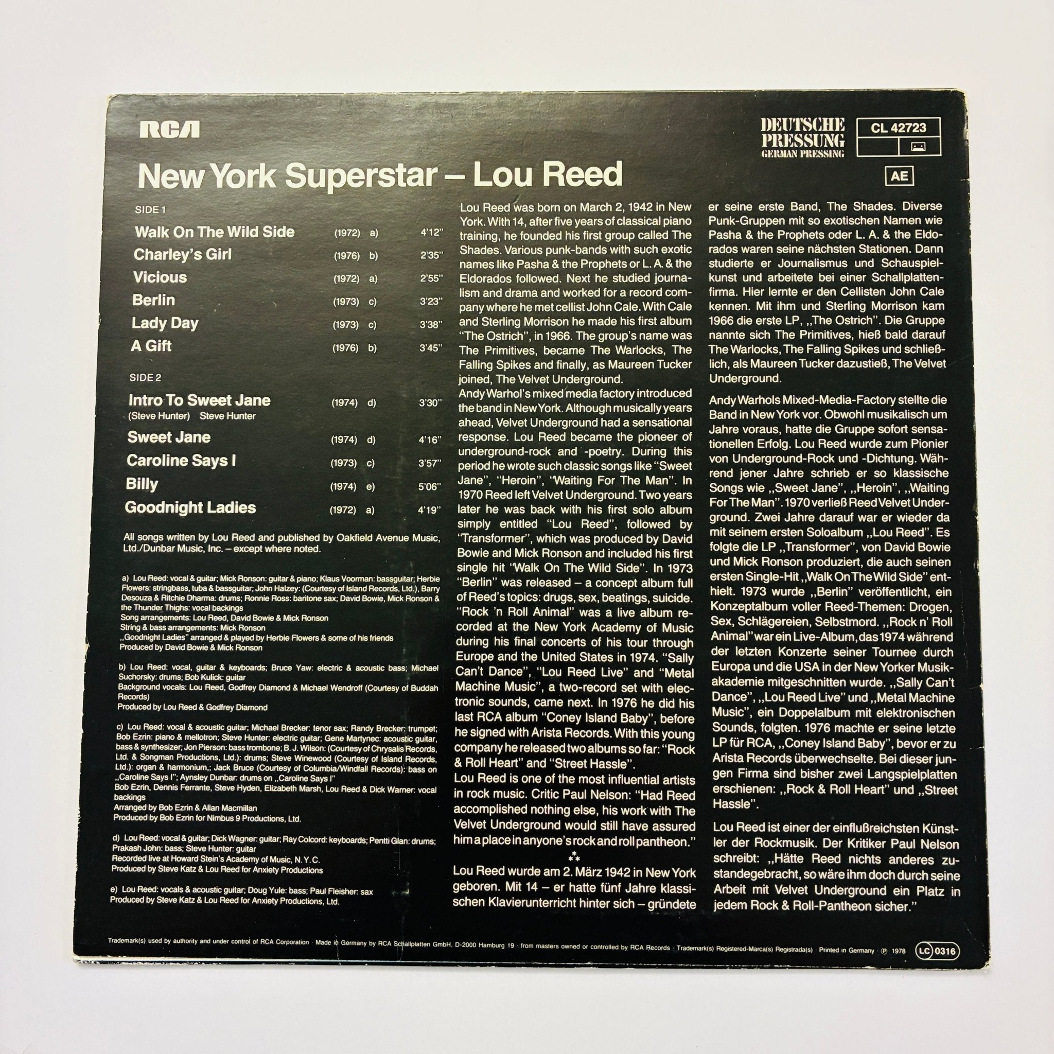 Lou Reed ‎– New York Superstar LP (NM)